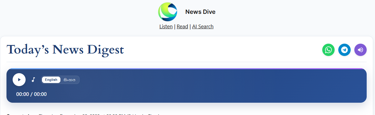 Introducing Sinhala & English Audio News. Listen to Your Daily Digest on NewsDive