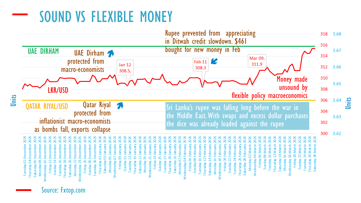 In contrast to the proactive measures taken by the central bank leadership in 2004, following the tsunami when they allowed the rupee to appreciate, a harsh display of inflationist policies led to the extraction of $461 million from the market in February 2025. Initial warnings regarding the rupee’s stability last year were primarily due to the central bank’s excessive dollar purchases, which did not initially trigger panic or loss of confidence among investors. However, the current scenario is markedly different, characterized by a significant loss of faith in the currency and an overwhelming excess of liquidity.
