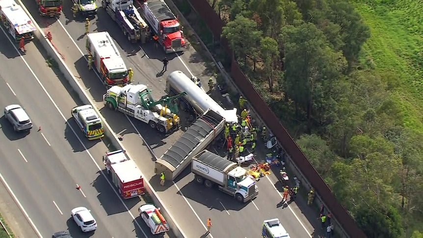 The incident, which involved a collision between two trucks, occurred on the Princes Freeway around 12:20 PM on Wednesday.