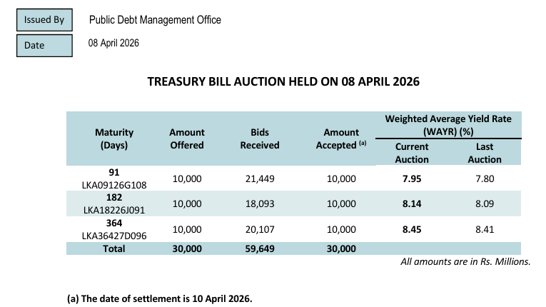 All three types of bills remain available for purchase on tap. (Colombo/Mar25/2026)