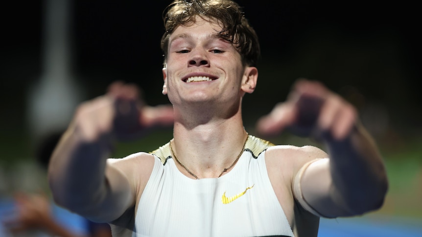 Cameron Spencer captured the moment at Sydney Olympic Park Athletic Centre as Lachlan Kennedy made history during the heats of the men’s 100 metres at the Australian Athletics Championships. The young sprinter clocked an impressive time of 9.96 seconds, marking a significant milestone as the first Australian to break the 10-second barrier on domestic soil.