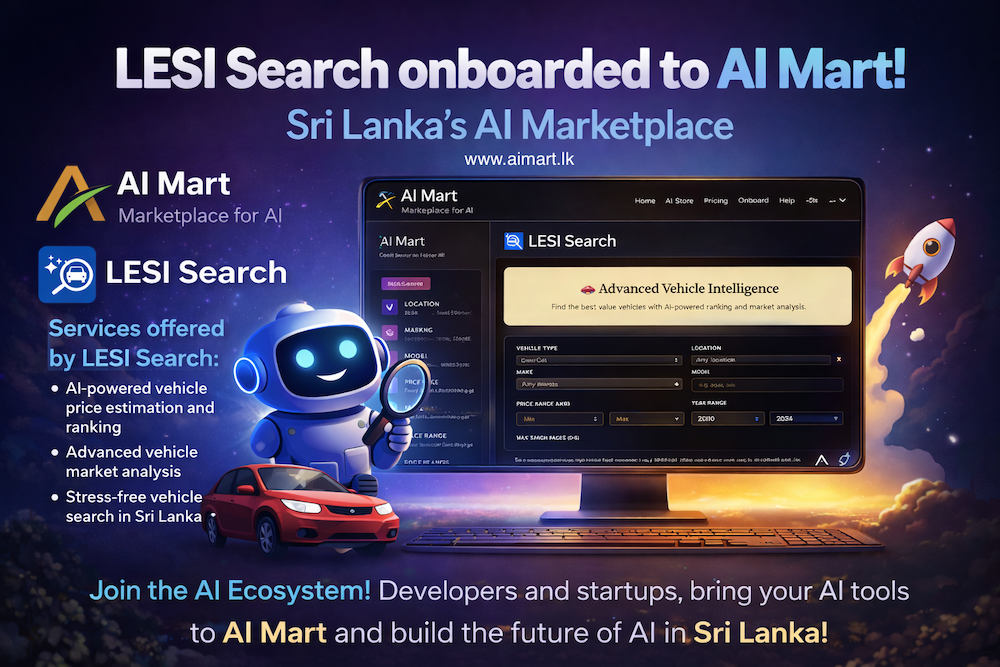 Colombo. Sri Lanka’s artificial intelligence landscape continues to evolve with the onboarding of LESI (ලේසි) Search, an AI-powered vehicle discovery platform, to AI Mart an emerging marketplace dedicated to AI tools and innovations in the country.